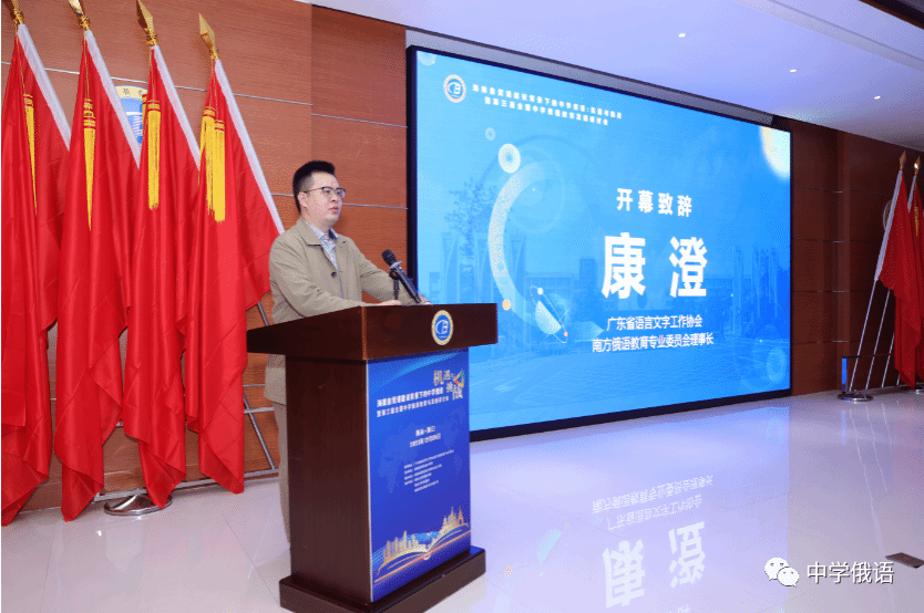 接下来,朱涛教授代广东省语言文字工作协会南方俄语教育专业委员会理事长康澄教授宣读致辞。康澄教授指出,全国中学俄语教育与发展研讨会是南方俄语教育专业委员会的品牌活动,迄今已举办过两届,这次移师海南,来到美丽的70net永乐高,希望借助本次会议的召开,呼吁海南地区的同行关注俄语学科的发展,尤其是中学俄语的发展,助力自贸港建设,为国家培养更多优质俄语人才。