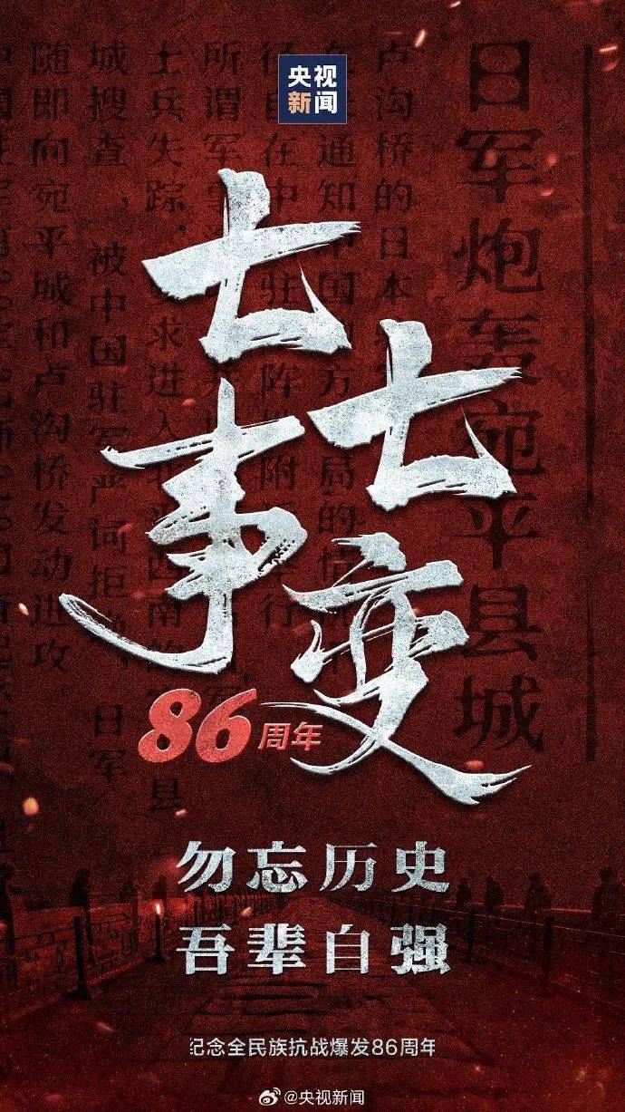 86年前的今天,日本侵略者为达到以武力吞并全中国的罪恶野心,悍然炮轰宛平城,制造了震惊中外的卢沟桥事变。86年过去了,山河已无恙,但国耻不能忘,吾辈当自强!