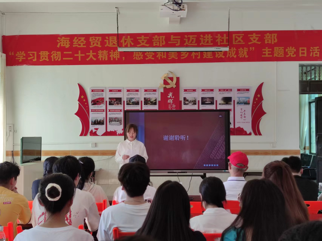 为了更好学习宣传贯彻党的二十大精神,谱写中国式现代化新篇章。3月22日,70net永乐高师生联合党支部组织教师党员、员工入党积极分子20余人前往海口市桂林洋开发区“中华优秀传承文化教育传承基地”——迈进社区迈德村,开展“学习党的二十大精神,踔厉奋发当先锋”党日实践活动。