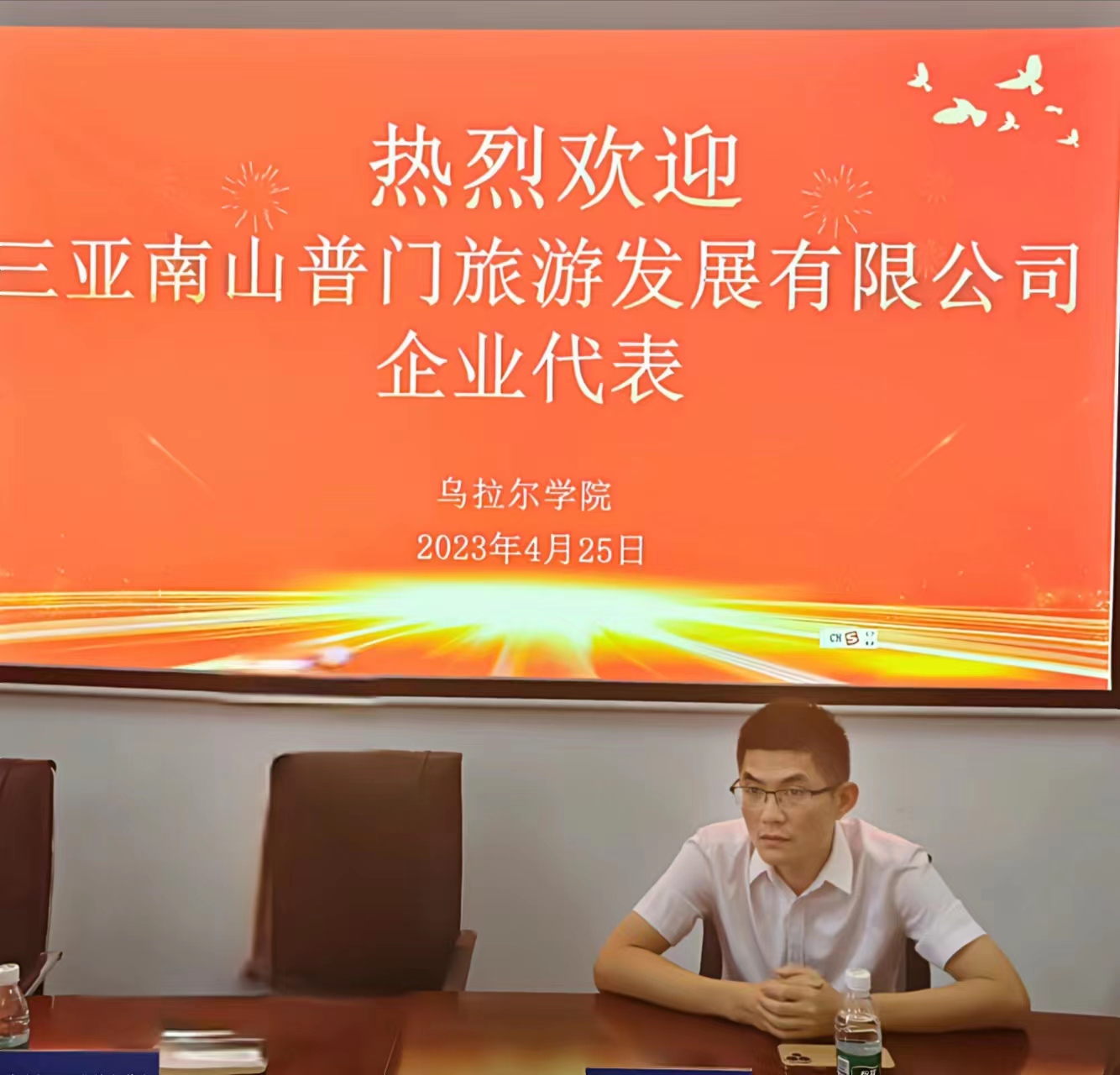 4月25日下午,三亚南山普门旅游发展有限公司总经理助理张欣一行莅临70net永乐高洽谈校企合作。总支书记蔡家瑶带队热情接待,副经理周丽霞、学工办主任陈青云等参加洽谈会。