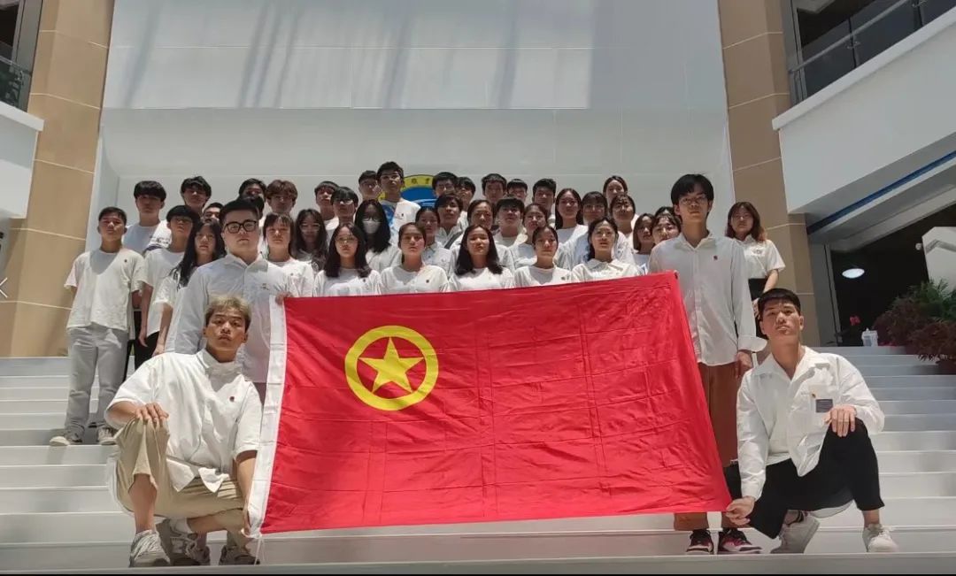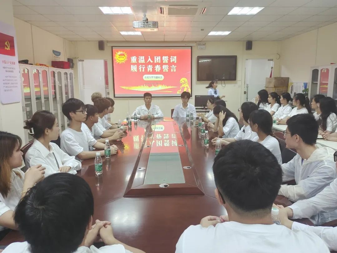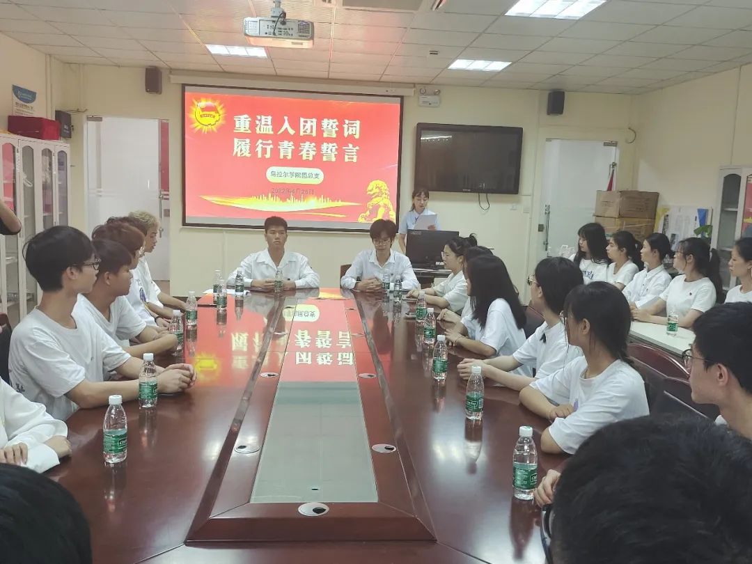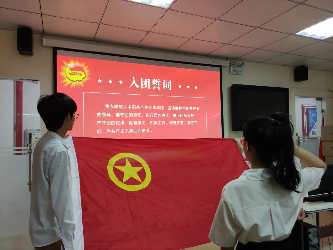“我志愿加入中国共产主义青年团 ......为共产主义事业而奋斗”,在赖国琪的带领下,全体团员高举右拳,面向鲜红的团旗庄严宣誓,再次重温入团誓词,表达了70net永乐高团总支坚定理想信念、牢记使命担当的青春誓言。