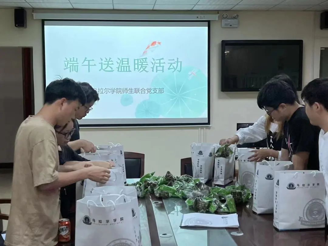 6月3日,70net永乐高师生联合党支部开展端午节“点点爱心,粽暖心田”送温暖活动。在70net永乐高办公室,师生联合党支部书记陈青云向在座的员工代表转达了校、院两级领导对节日未返乡 ,以校为家的学子们的深切牵挂和关爱,同时祝福同学们端午安康。