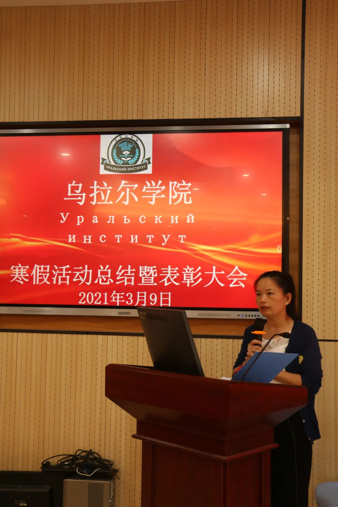 首先由孙佳莹老师给获奖同学颁发寒假俄语学习打卡奖。