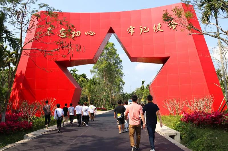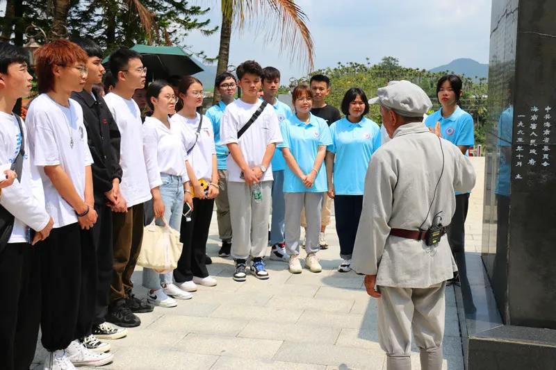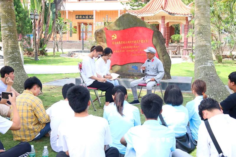 在纪念园,同学们参观了琼崖革命史展览馆,围坐在有近50年党龄的王学广老同志身边,聆听这位83岁老党员讲述他的入党故事。同学们对这位老党员矢志不移、不计个人利益为开展红色教育、传承红色基因的初心所折服,为他坚持理想信念、退休后放弃个人安养晚年而选择到纪念园担任园长兼讲解员这种奉献精神所震撼。