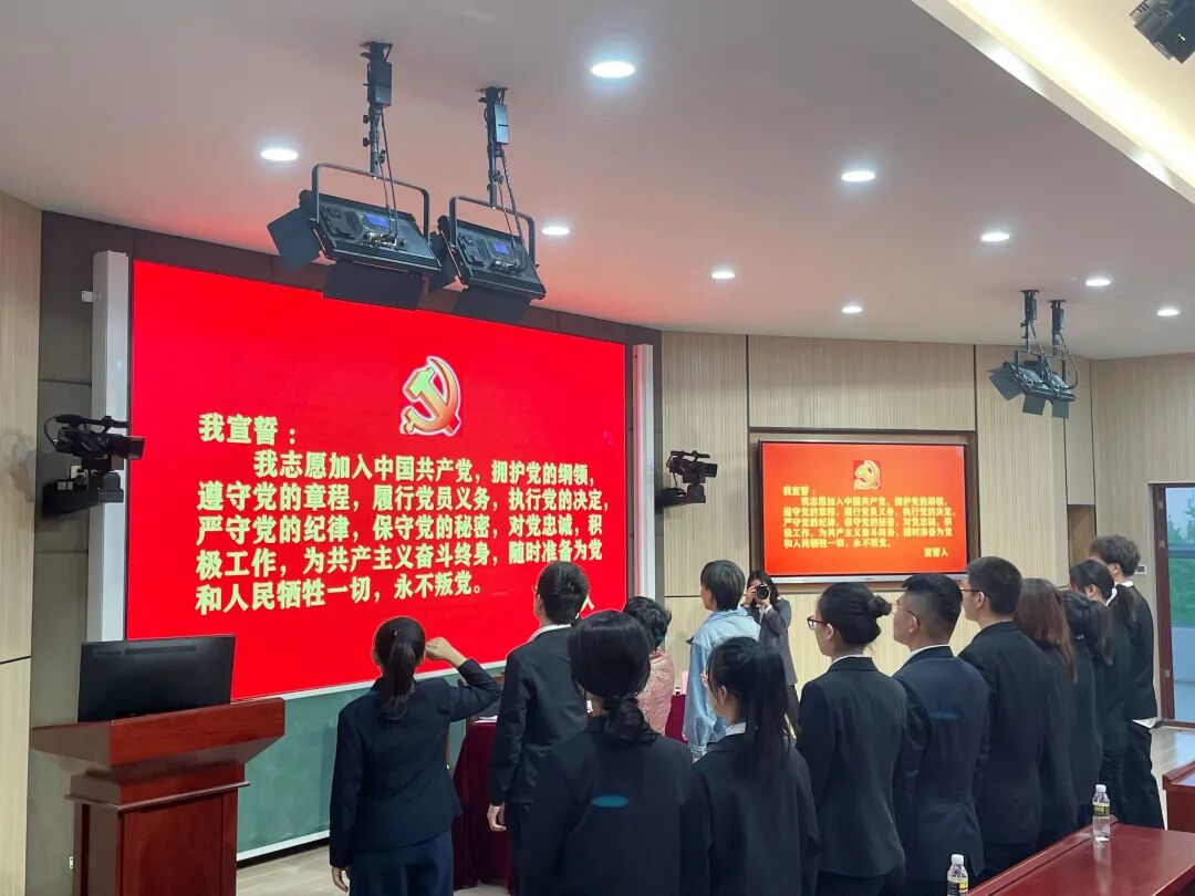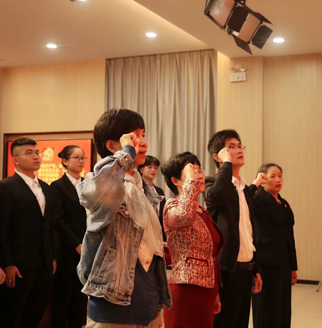 员干部和党员教师重温入党誓词,员工入党积极分子观摩,接受党性教育洗礼。公司机关党总支书记蒙永坚应邀担任领誓人。