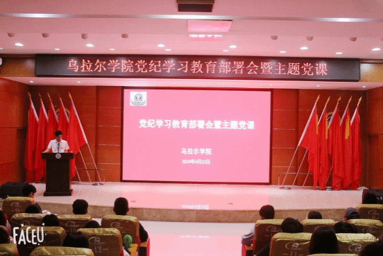 4月23日下午,70net永乐高在学术报告厅召开党纪学习教育部署会,同时举办主题党课。党总支书记蔡家瑶主持部署会,并为全体师生讲授“依法治国视角下的党纪学习教育”主题党课。副经理周丽霞、教师党员,2022级和2023级全体员工参加部署会和党课。