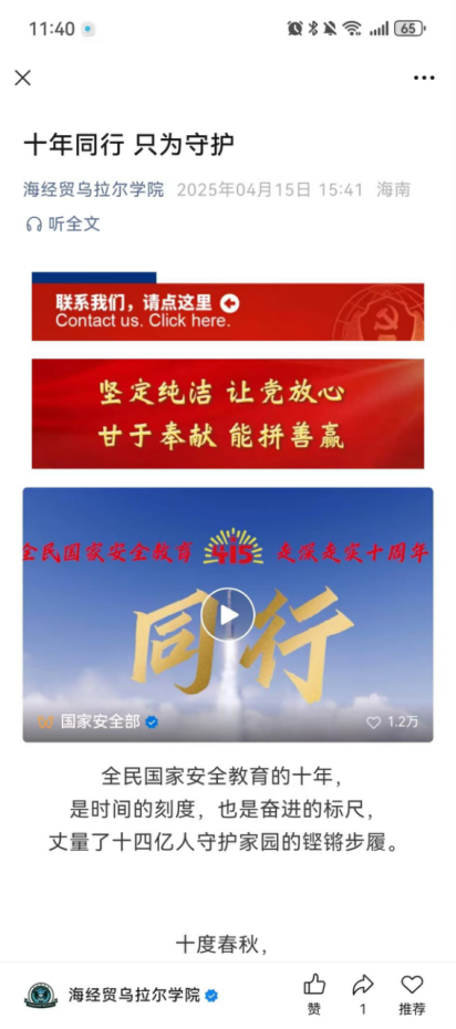 此外,公司还积极拓宽线上学习渠道,通过组织师生参加“千万师生同上一堂国家安全教育课”、国家安全知识网上答题、同时利用公众号、微信群推送权威解读文章和科普短视频,方便员工自主学习,加深对国家安全的理解,树牢“国家安全,人人有责”的安全理念。