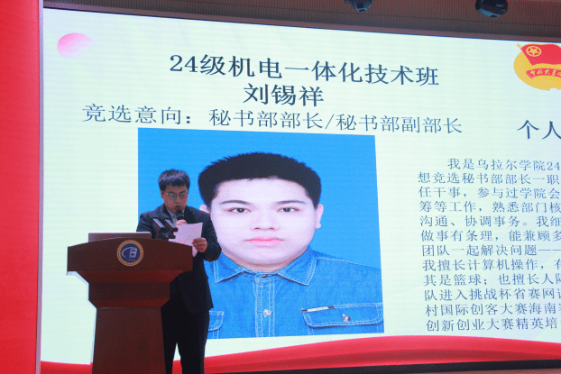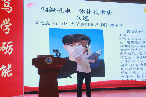 在热烈的氛围中,第五届团学组织换届环节正式开始。参与竞选的中外员工依次上台,进行精彩的竞选演讲。他们结合自身的经历和优势,阐述了对团学组织工作的理解和认识,表达了为同学服务的坚定决心以及对未来工作的规划和展望。台下的师生代表们认真聆听,不时报以热烈的掌声,对每一位竞选者表示鼓励和支持。整个竞选过程公正、公平、公开,充分展现了公司员工积极向上的精神风貌和勇于担当的责任意识。
