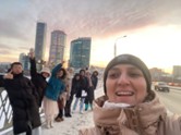一开始住宿环境不太适应,但是我们一起团结合作添置生活用品,把宿舍打造成我们自己的小窝,在公共厨房里可以看到不同国家的人一起做饭偶尔能一起闲聊,分享各自的美食,我印象最深刻的是西班牙和印度尼西亚的朋友,他们很喜欢糖醋排骨,我教他们。叶卡捷琳堡的冬天很长,刚来的时候气候不太适应,但是后面结识了很多俄罗斯朋友,在天气好的时候,我们一起会出去散步。我们会一起去森林,去公园,走在结冰的湖面和河面上。会发现这个城市不一样的风景,有城市风光,也有自然风光。