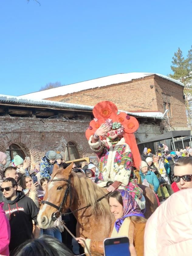 在周末跟朋友一起去公园散步喂鸽子,灰羽落在指尖时,喙尖的凉意惊起回忆:家乡榕树下的麻雀总带着温软潮气,而这里的鸽子,羽毛里藏着乌拉尔的风。当地节日更像一场色彩爆炸:棕马上的姑娘顶起艳红冠冕,花棉袄裹着毛皮,在积雪的砖房前笑得明媚,人群的欢呼震落了房檐的雪。