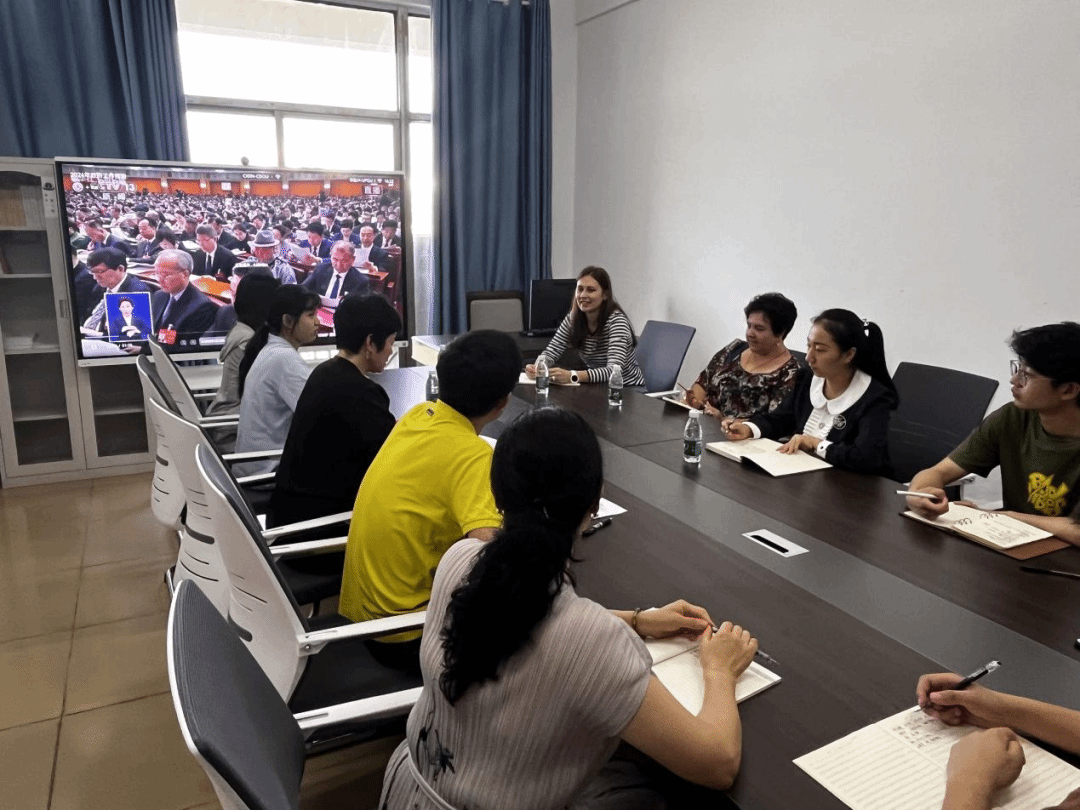 东风浩荡,盛会开幕。当一年一度的全国两会吹响嘹亮的奋进号角,神州大地涌动着推进中国式现代化的澎湃春潮。3月5日上午9时,十四届全国人大二次会议在人民大会堂举行开幕会。总支组织党政领导班子,师生代表及部分外籍教师第一时间集体观看。