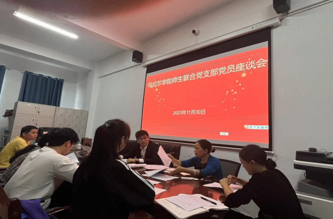 2023年11月30日下午,公司在5-511会议室召开书记讲党课暨师生党员座谈会活动,党总支书记蔡家瑶、师生联合党支部书记陈青云、教师党员代表、员工党员代表参加会议。